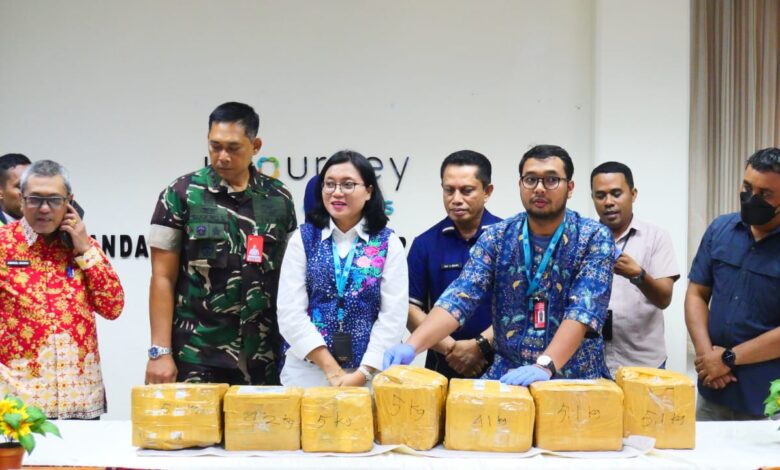 Danlanud Pattimura Hadiri Konferensi Pers Penemuan 33,5 Kg Cairan Merkuri di Bandara Pattimura Ambon