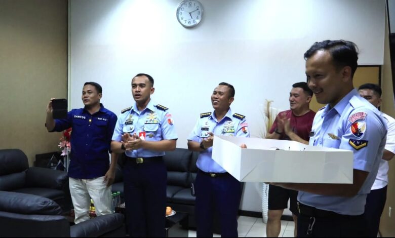 Makassar – Komandan Lanud Sultan Hasanuddin, Marsma TNI Bonang Bayuaji G., S.E., M.M., CHRMP., memberikan kejutan istimewa kepada General Manager PT. Angkasa Pura Indonesia Bandara Sultan Hasanuddin, Bapak Minggus E. T. Gandeguai, yang merayakan Hari Ulang tahunnya pada hari Senin, 30 September 2024, bertempat di Gedung PT. Angkasa Pura Indonesia, Bandara Lama, Kabupaten Maros, Sulawesi Selatan.