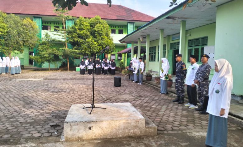 Bengkulu,- Danposal Manna Lettu Laut (P) Saerun menjadi Pembina Upacara Bendera di MAN 1/BS, Jalan Duayu, Kecamatan Manna, Kabupaten Bengkulu Selatan, Senin (13/10/2025).