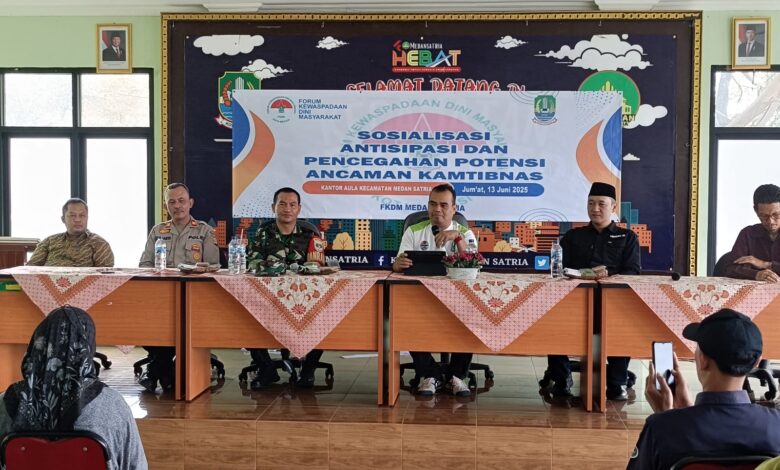 Kota Bekasi || Koranprogresif.id, Dalam upaya menjaga stabilitas keamanan dan ketertiban masyarakat, Danramil 01/Kranji Mayor Inf. Taufik Ismail, bersinergi dengan aparatur pemerintah Kota Bekasi menggelar kegiatan Sosialisasi “Mengantisipasi dan Mencegah Gangguan Kamtibmas di Wilayah Kecamatan Medan Satria”, bertempat di Aula Kecamatan Medan Satria, Lantai 2, Jl. Harapan Indah No. 9, Kota Bekasi, pada Jumat (13/6/2025).