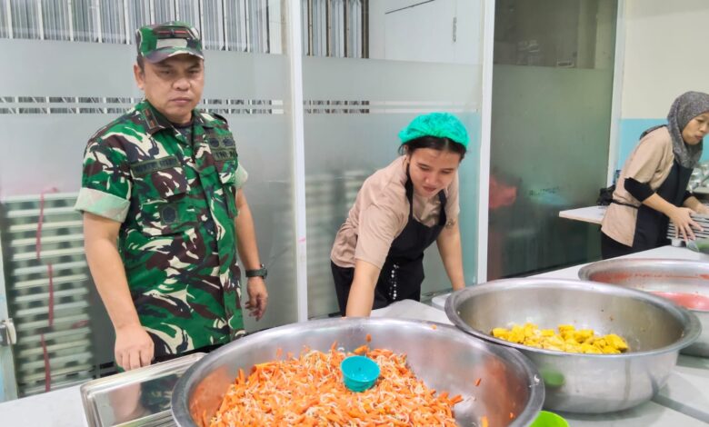 Kodim 0505/Jakarta Timur – Pelaksanaan pengolahan sampai dengan distribusi Makan Bergizi Gratis (MBG), Danramil 03/Pasar Rebo, Ciracas Mayor Inf Nawawi Afandi bersama Babinsa mengecek kebersihan dapur, pengolahan bahan makanan, pengawasan dan distribusi Makan Bergizi Gratis di wilayah Kecamatan Pasar Rebo dan Ciracas, Senin (14/07/25).