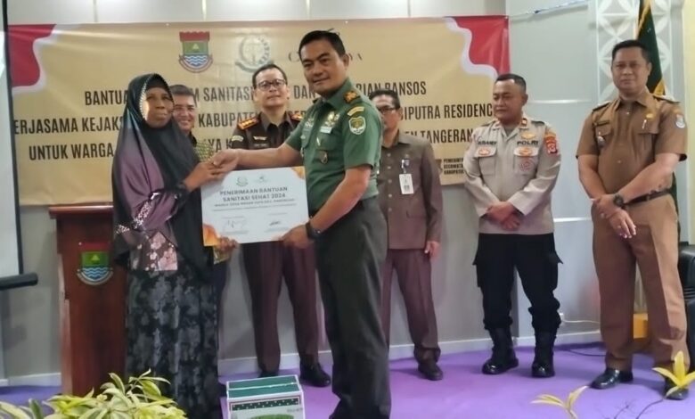 Tigaraksa || Koranprogresif.id, Danramil 14/Panongan Kodim 0510/Tigaraksa Kapten Cke Jitu Arman Sinaga, SH bersama Forkopimcam menghadiri kegiatan peresmian bantuan program sanitasi sehat dan pemberian bansos bersama Kejaksaan Negeri Kabupaten Tangerang dengan Pt Ciputra Residence untuk warga di Desa Mekar Jaya Kecamatan Panongan Kabupaten Tangerang Banten, Senin (13/01/2025)