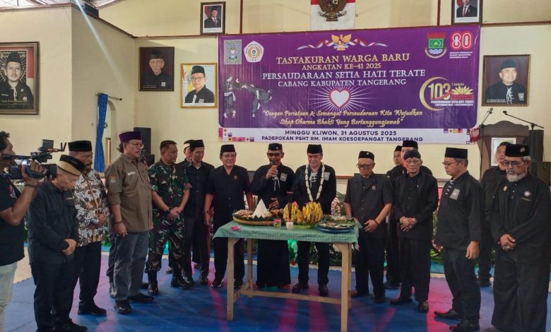 Tigaraksa – Danramil 10/Sepatan, Kodim 0510/Trs Mayor Inf M. Ridwan Idrus mendampingi Bupati Tangerang Maesyal Rasyid menghadiri tasyakuran PSHT di Padepokan PSHT Desa Lebak Wangi, Kecamatan Sepatan Timur Kabupaten Tangerang, Minggu (31/08/2025).