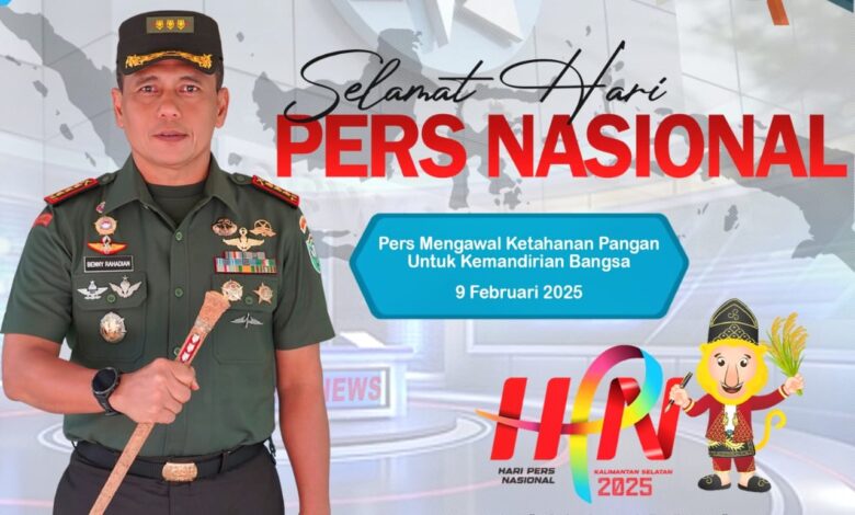 Aceh Barat || Koranprogresif.id, Komandan Korem 012/Teuku Umar (TU) Kolonel Inf Benny Rahadian, S.E., M.Han., beserta seluruh Keluarga Besar Korem 012/TU mengucapkan Selamat Hari Pers Nasional (HPN) 2025 kepada seluruh insan pers di Provinsi Aceh, khususnya di wilayah Korem 012/TU.
