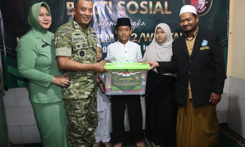 Tangerang – Dalam rangkaian peringatan Hari Ulang Tahun ke-27 Korem 052/Wijayakrama Komandan Korem 052/Wkr, Brigjen TNI Faizal Rizal, S.I.P., didampingi Ketua Persit Kartika Chandra Kirana Koorcab Rem 052 PD Jaya, memimpin langsung kegiatan Bakti Sosial dengan mengunjungi dua yayasan yatim di wilayah Tangerang pada hari Jum’at (31/10/2025).