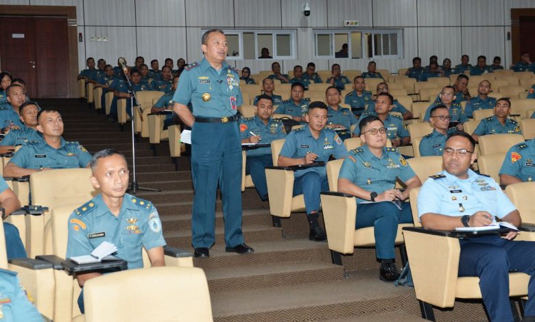 Komandan Sekolah Staf dan Komando Angkatan Laut (Danseskoal) Laksamana Muda TNI Ariantyo Condrowibowo memberikan pembekalan awal kepada 123 orang Perwira Siswa (Pasis) Pendidikan Reguler (Dikreg) Seskoal Angkatan ke-64 TA 2025, bertempat di kelas gabungan gedung Samadikun Seskoal, Cipulir, Kebayoran Lama, Jakarta Selatan, Selasa (5/8/2025).