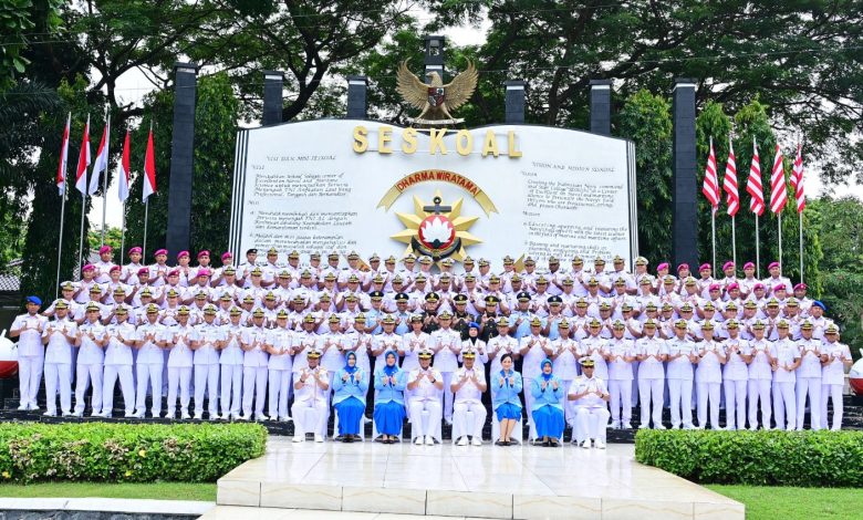 Komandan Sekolah Staf dan Komando Angkatan Laut (Danseskoal) Laksamana Muda TNI Ariantyo Condrowibowo didampingi Ketua Cabang Berdiri Sendiri Jalasenastri Seskoal Ny. Dian Ariantyo Condrowibowo menghadiri Upacara Penutupan Pendidikan Reguler (Dikreg) Seskoal angkatan ke-64 TA 2025, dengan Inspektur Upacara (Irup) Kepala Staf Angkatan Laut (Kasal) Laksamana TNI Dr. Muhammad Ali, S.E., M.M., M.Tr.Opsla., didampingi Ketua Umum Jalasenastri Ny. Fera Muhammad Ali, bertempat di gedung Jos Soedarso Seskoal, Cipulir, Kebayoran Lama, Jakarta Selatan, Selasa (9/12/2025).