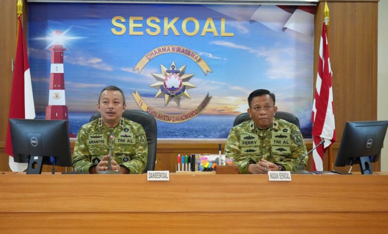 Komandan Sekolah Staf dan Komando Angkatan Laut (Danseskoal) Laksamana Muda TNI Ariantyo Condrowibowo menerima paparan Kepala Departemen Strategi (Kadepstra) Seskoal Letkol Laut (P) Lucky Wuwung, M.M.P. tentang rencana kegiatan Kuliah Kerja Dalam Negeri (KKDN) Perwira Siswa Pendidikan Reguler (Pasis Dikreg) Seskoal angkatan ke-65 TA 2026, bertempat di ruang rapat utama gedung Samadikun Seskoal, Cipulir, Jakarta Selatan, Rabu (04/03/2026).