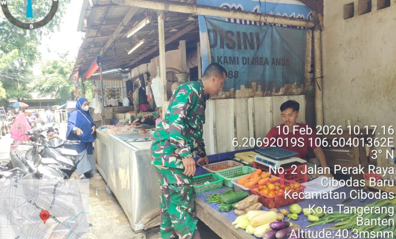 Tangerang – Dalam rangka memastikan stabilitas harga dan ketersediaan bahan pokok seperti cabe, bawang dan bahan pokok saat mendekati bulan suci Ramadhan, Babinsa Koramil 06/Cibodas Kodim 0506/Tgr turun langsung memonitoring harga Sembako di pasar tradisional di wilayah teritorial Koramil 06/Cibodas, Selasa (10/02/2026).