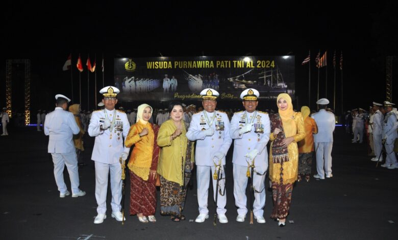 Surabaya || Koranprogresif.id, Komandan Korps Marinir (Dankormar) Mayor Jenderal TNI (Mar) Dr. Endi Supardi, S.E., M. Tr. Opsla., CHRMP., CRMP. didampingi Ketua Gabungan Jalasenastri Korps Marinir Ny. Nana Endi Supardi menghadiri Acara Wisuda Purna Wira Perwira Tinggi (Pati) TNI AL bertempat di Lapangan Arafuru, Akademi Angkatan Laut (AAL) Bumimoro, Surabaya. Kamis malam (10/10/2024).