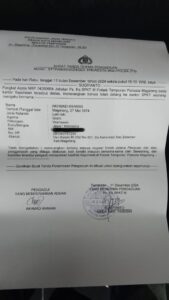 Pelapor, Akhmad Ikhwan (50) warga Salaman yang berdomisili di Tanggulrejo Tempuran Kabupaten Magelang ini melaporkan terduga pelaku ke Polsek Tempuran Polresta Magelang. Dengan Surat Pengaduan Nomor: SPPKT/08/ tertanggal 11 Desember 2024.
