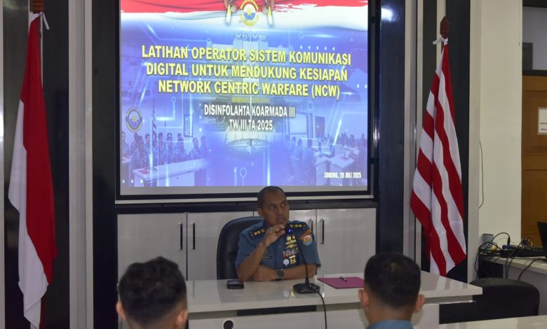 Katapop, Kabupaten Sorong, 28 Juli 2025 — Dalam rangka meningkatkan profesionalisme dan kesiapan personel menghadapi tuntutan operasi modern, Dinas Informasi dan Pengolahan Data (Disinfolahta) Komando Armada (Koarmada) III menggelar Latihan Operator Sistem Komunikasi Digital Network Centric Warfare, bertempat di Ruang Rapat Dinas Komunikasi dan Elektronika (Diskomlek) Mako Koarmada III, Senin (28/7).