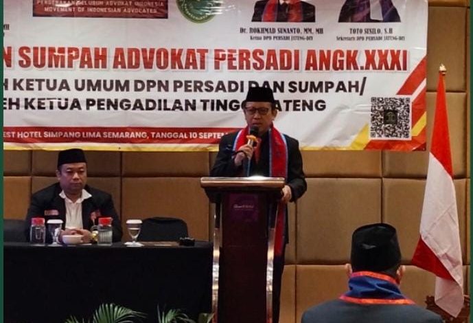 Melalui keterangannya kepada wartawan, Kamis (11/9), Irjen Pol (Purn) Dr. Rokhmad Sunanto, MM, MH, CRM, menyampaikan ucapan selamat kepada para peserta atas proses yang dilalui dengan penuh semangat dan kesabaran sejak mengikuti Pendidikan Khusus Profesi Advokat (PKPA) dan Ujian Profesi Advokat (UPA), selanjutnya untuk menjadi seorang Advokat yaitu mengikuti Sumpah/Janji yang dilaksanakan pada tanggal 11 September di Aula Pengadilan Tinggi Jawa Tengah, Semarang.
