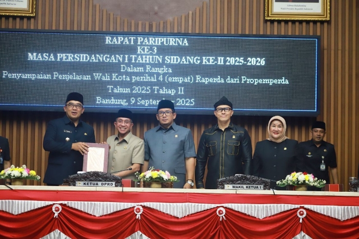 BANDUNG, koranprogresif — DPRD Kota Bandung menerima empat usulan Raperda dari Propemperda Tahun 2025 Tahap II, dalam rapat paripurna yang digelar Selasa, 9 September 2025. Rapat paripurna ini dipimpin oleh Ketua DPRD Kota Bandung H. Asep Mulyadi, S.H., didampingi Wakil Ketua I DPRD Kota Bandung H. Toni Wijaya, S.E., S.H., Wakil Ketua II Dr. H. Edwin Senjaya, S.E., M.M., Wakil Ketua III Rieke Suryaningsih, S.H., serta dihadiri para Anggota DPRD Kota Bandung. Hadir dalam rapat paripurna itu, Wali Kota Bandung Muhammad Farhan, Sekda Kota Bandung Iskandar Zulkarnain, serta jajaran pimpinan OPD.