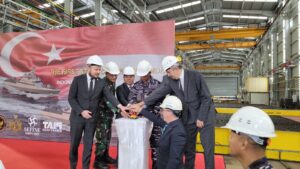JAKARTA || Koranprogresif.id – TNI AL dalam hal ini Staf Khusus Kepala Staf Angkatan Laut (Stafsus Kasal), Laksda TNI Retiono Kunto mewakili Kabaranahan Kemhan Marsdya TNI Yusuf Jauhari, meresmikan pelaksanaan First Steel Cutting (FSC) dua Kapal Cepat Rudal (KCR) Full Combat Mission (NB74 & NB75), di Workshop Fabrikasi CNC Sefine Shipyard, Altinova, Yalova, Turki, Rabu (30/10).