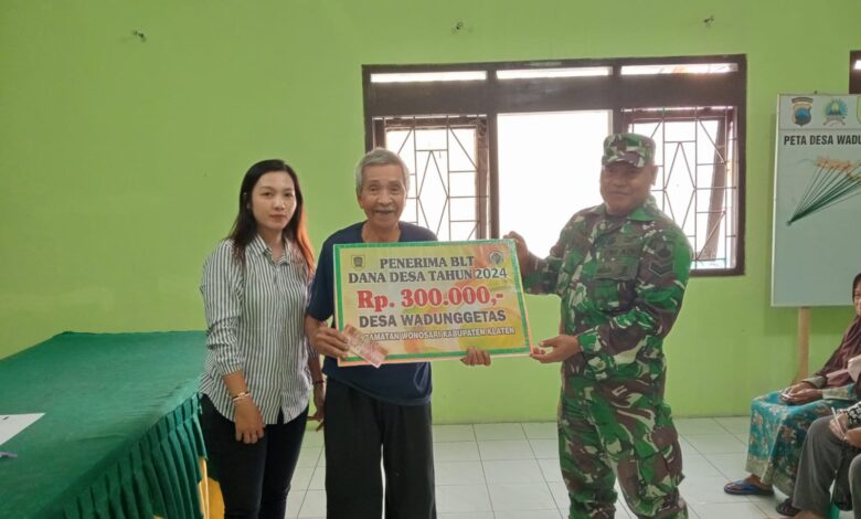 Klaten || Koranprogresif.id, Sertu Amar, Babinsa Desa Wadunggetas dari Koramil 22 Wonosari Kodim 0723 Klaten, melaksanakan monitoring penyaluran Bantuan Langsung Tunai (BLT) Dana Desa Tahap VIII di Gedung PKK Desa Wadunggetas Kecamatan Wonosari Kabupaten Klaten, (23/08/2024)