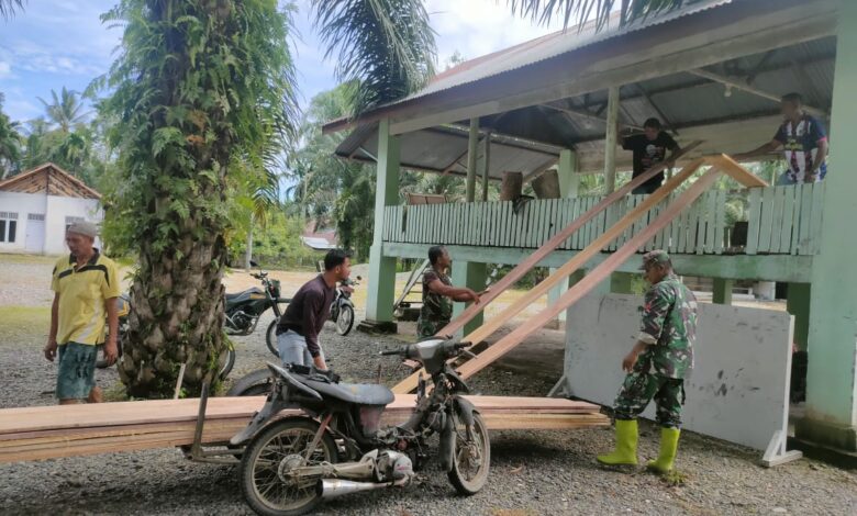 Dukung Pendidikan lslami, Anggota Posramil 05/Pante Ceureumen Bantu Proses Perehaban Balai Pengajian