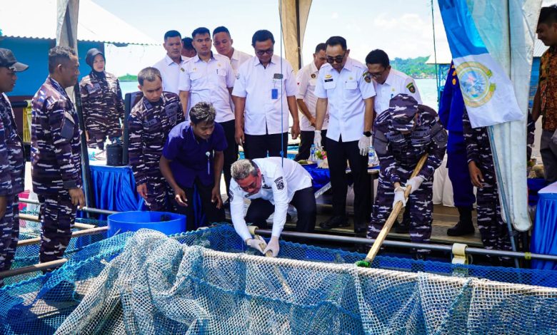 Ambon,- Komandan Komando Daerah Angkatan Laut (Dankodaeral) IX Laksamana Muda TNI Hanarko Djodi Pamungkas S.H., mengikuti kegiatan vicon panen serentak TNI AL, bertempat di Keramba Jaring Apung (KJA) Perairan Teluk Ambon, Rabu (29/10/2025).