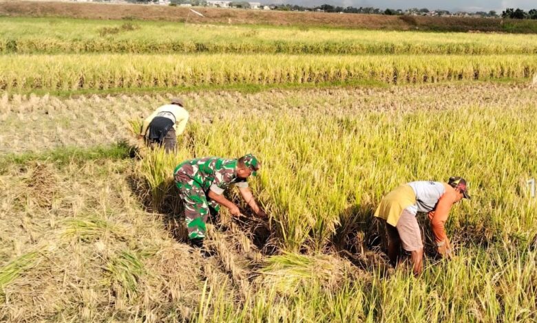 Dukung Program Ketahanan Pangan Nasional, Serka Adi Dampingi Petani Panen Padi