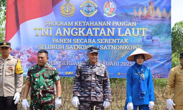 Belawan || Koranprogresif.id, Komandan Pangkalan Utama TNI Angkatan Laut I (Danlantamal) I Brigjen TNI (Mar) Jasiman Purba, S.E., CHRMP., diwakili Wadan Lantamal I Kolonel Laut (P) Baharuddin Anwar, S.T., M.M., mengikuti kegiatan panen dan penanaman serentak seluruh Satkowil/Satnonkowil TNI Angkatan Laut melalui Vicon yang terpusat di Lampung dipimpin oleh Kepala Staf Angkatan Laut (Kasal) Laksamana TNI Dr. Muhammad Ali, S.E., M.M., M.Tr.Opsla., didampingi oleh Ketua Umum PP Jalasenastri Ny. Fera Muhammad Ali, Dirjen Tanaman Holtikultura Kementan RI, Dirjen Budidaya Perikanan Kementerian KKP RI, Pangkoarmada RI, Pangkoarmada I, Dankormar, dan Aspotmaral, bertempat di Lahan Ketahanan Pangan Lantamal I Satuan Pemancar Lantamal I, Tanjung Morawa, Kabupaten Deli Serdang, Sumatera Utara, Senin (3/2/2025).