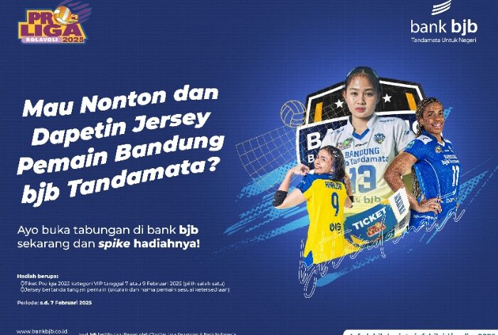 BANDUNG, koranprogresif.id – bank bjb menghadirkan promo spesial bagi nasabah yang ingin menyaksikan langsung ajang Proliga 2025. Melalui program ini, nasabah berkesempatan mendapatkan tiket VIP serta jersey eksklusif bertanda tangan pemain Bandung BJB Tandamata. Promo ini berlaku hingga 7 Februari 2025 dan dapat diikuti oleh nasabah baru maupun eksisting.