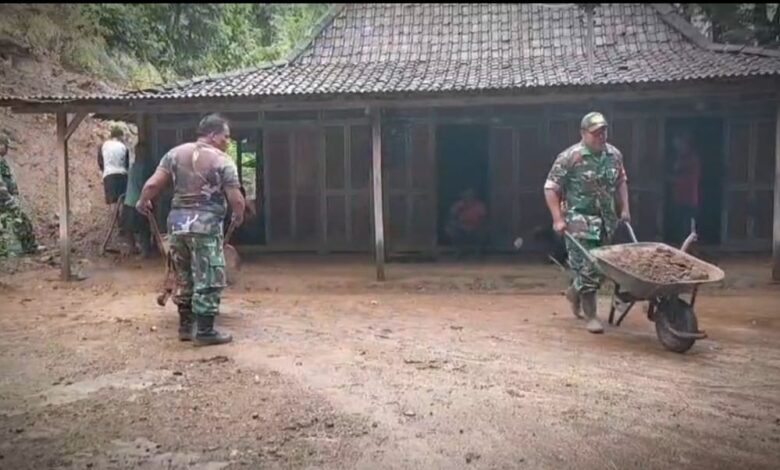 Empat Titik Tanah Longsor di Satu Desa, Anggota Kodim Ponorogo Lakukan Kerja Bakti