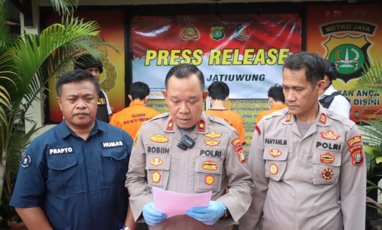 Hal tersebut disampaikan Kapolsek Jatiuwung, Kompol Robiin dalam konferensi pers yang digelar pada Senin, (26/5/2025) di Kantor Polsek Jatiuwung. Didampingi Kasi Humas Polres Metro Tangerang Kota, AKP Prapto Lasono dengan menghadirkan tiga pelaku berikut 4 unit motor hasil curiannya.