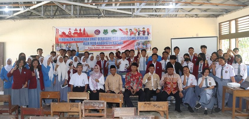 Kuala Kapuas – koranprogresif.co.id – Forum Kerukunan Umat Beragama (FKUB) Masuk Sekolah, begitulah tema Kegiatan Pembinaan Kerukunan Umat Beragama (KUB) Bagi Siswa Sekolah di SMAN 1 Kapuas Hilir Kabupaten Kapuas yang dilaksanakan oleh Forum Kerukunan Umat Beragama (FKUB) Kabupaten Kapuas bersama Kantor Kementerian Agama Kabupaten Kapuas dan Pemerintah Daerah melalui Badan Kesatuan Bangsa dan Politik Kabupaten Kapuas, Rabu (09/08/2023).