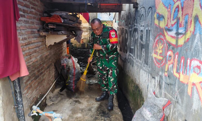 Gang Selokan Penuh Sampah Babinsa Serka Rital Bersama PPSU Membersihkan