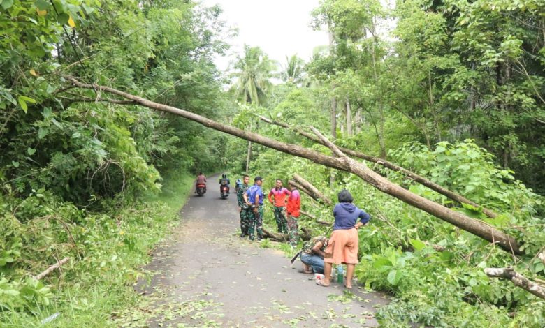 GERAK CEPAT PRAJURIT TNI AL EVAKUASI POHON TUMBANG DI LIKUPANG