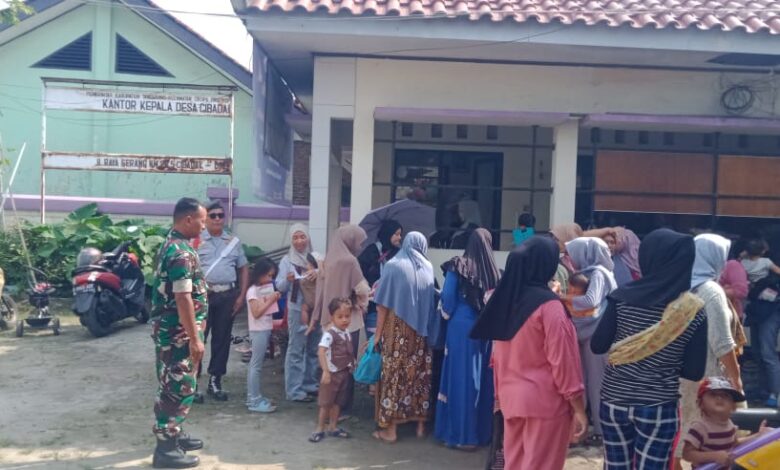 Terlihat Warga desa Cibadak di dampingi Babinsa sangat antusias berduyun-duyun untuk mengikuti pelaksanaan Gebrak Posyandu yang di mulai sejak pukul 9:00 Wib.