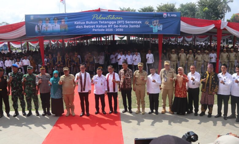 JAMBI || – Koranprogresif.id – Gubernur Jambi, Dr. H. Al Haris, S.Sos, MH mengapresiasi pemilihan Ketua RT serentak yang berlangsung aman, damai dan kondusif di Kota Jambi. Pelantikan Ketua Rukun Tetangga (RT) Se-Kota Jambi Periode 2025-2030 sebanyak 1.650 orang ini dihadiri langsung Wakil Menteri Dalam Negeri Republik Indonesia, Dr. Bima Arya Sugiarto, S.IP., MA, bertempat di Lapangan Kantor Wali Kota Jambi, Kota Jambi, Rabu (21/05/2025).