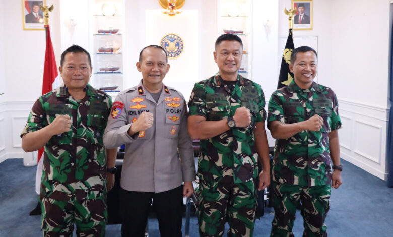 TNI AL-Dispenlantamal3. Komandan Pangkalan Utama TNI Angkatan Laut (Danlantamal) III Jakarta Brigjen TNI (Mar) Harry Indarto, S.E., M.M. mengadakan kunjungan kerja ke Direktur Kepolisian Perairan Korps Kepolisian Perairan dan Udara Badan Pemelihara Keamanan (Dirpolair Korpolairud Baharkam) Polri Brigjen Pol Idil Tabransyah, S.H., M.M. bertempat di kantor Ditpolair Jl. R.E. Martadinata I No. 1 Tanjung Priok, Jakarta Utara, Senin (14/04/2025).