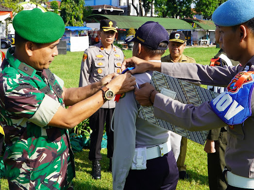 PACITAN || Koranprogresif.id – Kasdim 0801/Pacitan, Mayor Inf Muhajir mendampingi Wakapolres Pacitan, Kompol Pujiyono, S.H dalam rangka Apel Gelar Pasukan Operasi Kepolisian Terpusat “Ketupat 2025”, dalam rangka pengamanan Idul Fitri 1446 H, berlangsung di Alun-Alun Jl. Sugiyo Pranoto No. 01 Kota Pacitan, Kamis (20/03/2025).