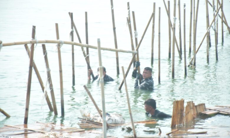 Jakarta || Koranprogresif.id, Dalam rangka mencapai target 1 KM/hari, TNI AL dalam hal ini Pangkalan TNI Angkatan Laut Banten di pimpin langsung oleh Komandan Lanal Banten Kolonel Laut (P) Arif Rahman, S.T., M.Tr. Hanla., M.M., melanjutkan pembongkaran pagar laut yang membentang di sekitar wilayah perairan Kronjo Kabupaten Tangerang. (Jumat, 24/01/25)