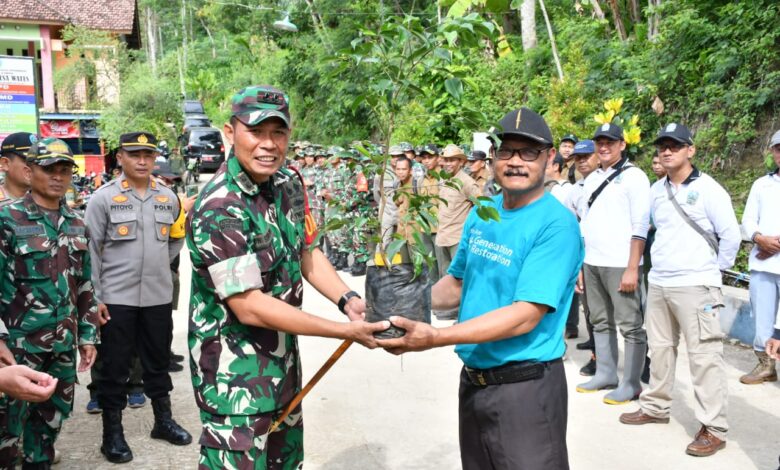 “Selamat Hari Menanam Pohon Indonesia. Alhamdulillah hari ini kita bisa berkumpul dalam kegiatan aksi sosial peduli alam dengan menanam berbagai jenis bibit pohon di Desa Wates,“ kata Dandim.