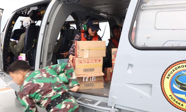 HELI TNI AL DISTRIBUSIKAN LOGISTIK BANTUAN KEMANUSIAAN DI SIBOLGA