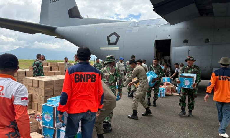 Hercules TNI AU Kembali Angkut Bansos 12.8 Ton ke Bandara Rembele Aceh