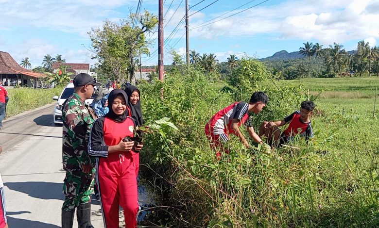 PONOROGO || Koranprogresif.id – Anggota Koramil Tipe B 0802/17/Pulung, Kodim 0802/Ponorogo melakukan penanaman anakan bibit pohon bertempat di sepanjang kanan dan kiri jalan Desa Kesugihan, Kecamatan Pulung, Kabupaten Ponorogo, Kamis (05/02/2026).
