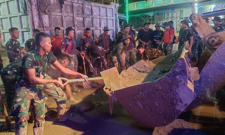 Hingga Larut Malam, Prajurit TNI Lanjutkan Pembersihan Pasar Aceh Tamiang