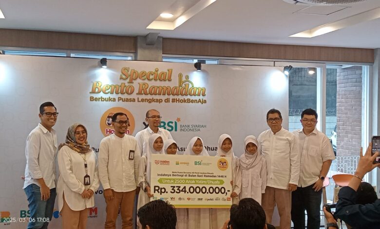 Jakarta || Koranprogresif.id, Menyambut bulan suci Ramadan 1446 H, HokBen kembali menghadirkan Bento Ramadan, paket makanan halal yang lengkap, sehat, dan berkualitas untuk menemani momen berbuka puasa pelanggan setianya. Selain itu, HokBen juga meluncurkan program sosial Indahnya Berbagi di Bulan Suci Ramadan, bekerja sama dengan Bank Syariah Indonesia (BSI), guna berbagi kebahagiaan dengan anak yatim dan dhuafa di berbagai panti asuhan.