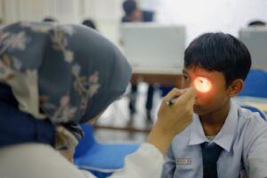 Hasil skrining yang dilakukan pada 701 siswa di SMPN 92 Jakarta pada 17-18 Februari 2025 menunjukkan bahwa 36,4% siswa membutuhkan kacamata, dan 14% di antaranya mengalami miopia tinggi (minus ≥ -5.00D). Fakta ini menunjukkan masih banyak anak yang tidak menyadari kebutuhannya akan koreksi penglihatan, sementara orang tua pun belum memahami dampak jangka panjang dari miopia yang tidak terkontrol.