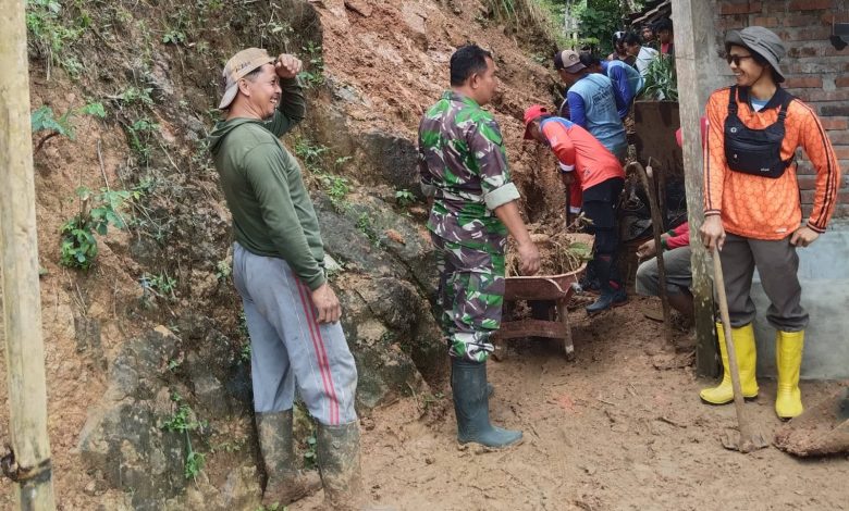 Hujan Deras Sebabkan Longsor di Kampak, Babinsa dan Warga Bergerak Cepat Bersihkan Material