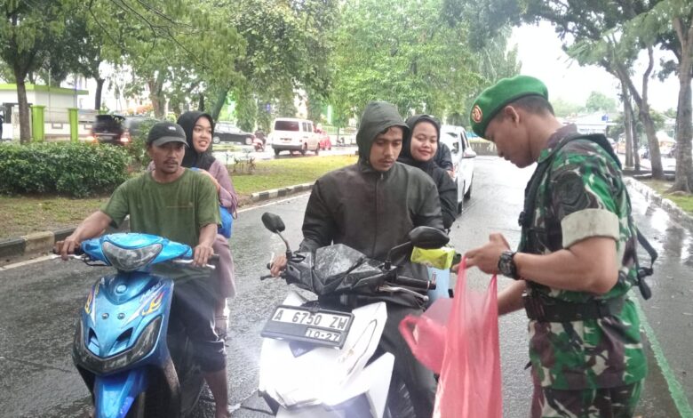 Tigaraksa || Koranprogresif.id, Kodim 0510/Tigaraksa menggelar aksi berbagi takjil di bulan Ramadhan dengan penuh kehangatan. Meski Di tengah kegiatan diguyur hujan, seorang anak kecil menangis diatas sepedamotor ayahnya saat melintas di depan Kodim 0510/Tigaraksa, Sabtu sore (08/03/2025). Tangisnya berubah menjadi senyum ketika seorang prajurit TNI mendekat dan memberinya takjil kepada bocah tersebut.