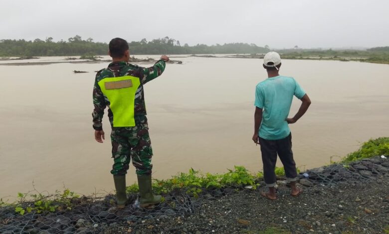 Hujan Tiada Henti, Babinsa Posramil 05/PC Ajak Warga Kroscek Volume Air Sungai
