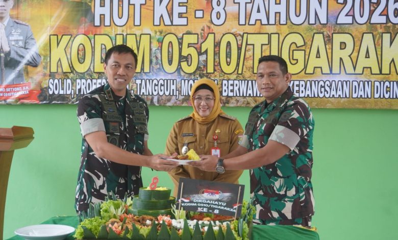Tigaraksa – Kodim 0510/Tigaraksa merayakan HUT ke-8 dengan memberikan santunan kepada 40 anak yatim dan menggalang dukungan bagi masyarakat terdampak bencana banjir di beberapa wilayah Kabupaten Tangerang, pada Jumat (9/2). Acara dihadiri oleh Wakil Bupati Tangerang, Kepala Kejaksaan Negeri, Kepala Lapas, Kepala BPN, serta Ketua MUI Kabupaten Tangerang.