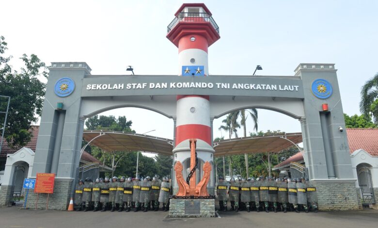 Jakarta || Koranprogresif.id, 0 April 2025. Dalam rangka menjaga dan meningkatkan kesiapsiagaan, Prajurit Sekolah Staf dan Komando Angkatan Laut (Seskoal) melaksanakan latihan Penanggulangan Huru-Hara (PHH) di Gerbang Penjagaan Pos 1 Seskoal, Cipulir, Jakarta Selatan, Kamis (10/4/2025).