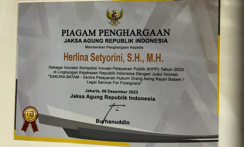 Prestasi yang diperoleh dari Jaksa Agung ST. Burhanuddin selama selama menjabat Kepala Kejaksaan Negeri Batam, Herlina Setyorini bersama jajarannya: