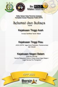 Prestasi yang diperoleh dari Jaksa Agung ST. Burhanuddin selama selama menjabat Kepala Kejaksaan Negeri Batam, Herlina Setyorini bersama jajarannya: