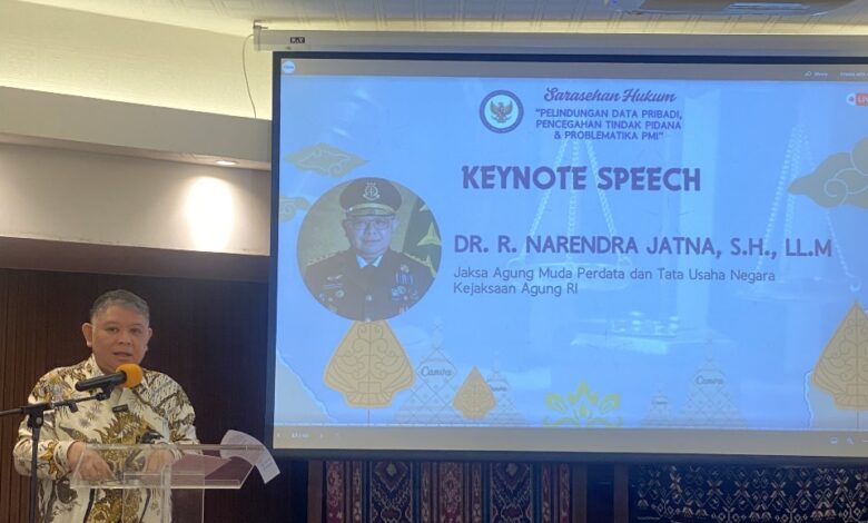 JAKARTA || Koranprogresif.id – Jaksa Agung Muda Perdata dan Tata Usaha Negara (JAM-Datun) Kejaksaan Agung, Dr. R. Narendra Jatna, S.H, LL.M, menyoroti pentingnya perlindungan data pribadi, pencegahan tindak pidana transnasional dan problematika Pekerja Migran Indonesia (PMI) dalam pidatonya pada Sarasehan Hukum yang diselenggarakan di Konsulat Jenderal Republik Indonesia (KJRI) Hong Kong, pada Minggu (22 Juni 2025).